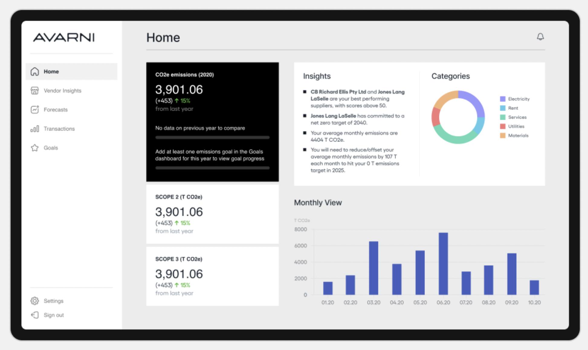 「Avarni」平台将供应链和支出数据汇总成综合数据集,并利用人工智能技术帮助企业统计、分析、预测碳足迹。自去年推出以来,「Avarni」已经分析了价值超过1000亿美元的企业支出数据,接触了1亿吨二氧化碳当量的供应链,其客户包括KPMG Australia、Point B、太阳能初创公司5B等。
