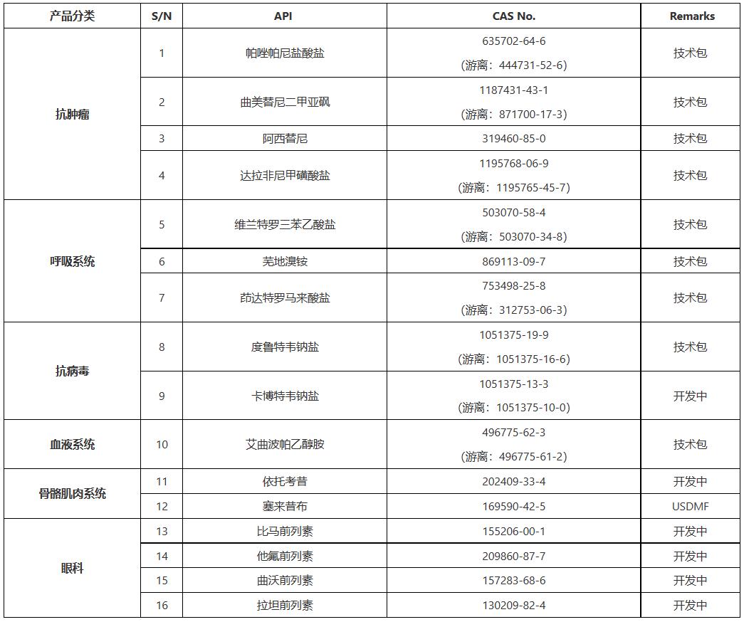 华先医药原料药目录