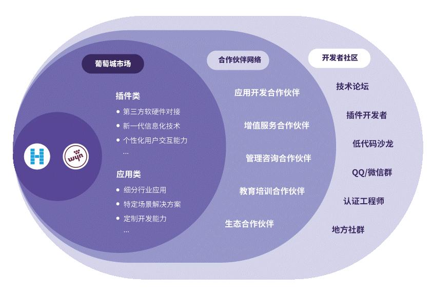 通过完全开放的低代码交易平台“葡萄城市场”,助力伙伴加速成果转化,获取商机;通过链接伙伴与企业供需双方,方便企业寻找匹配系统及定制化服务,帮助不同类型伙伴形成方案互补;通过涵盖了技术赋能、营销赋能、生态赋能的“云帆计划”和完善的伙伴成长路径,全面赋能伙伴,帮助伙伴顺利成长转型,做更多的项目,做更高价值的项目。
