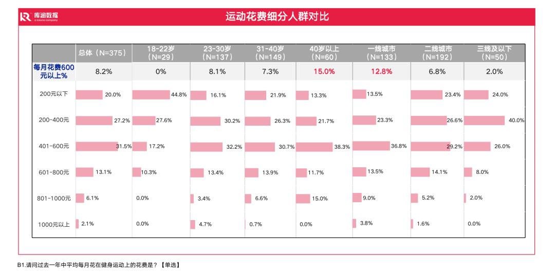 不同年龄段的男性,对运动的重视程度、消费水平有何不同?是年轻精力充沛的小伙更愿意运动、并在其花费更多的资金?还是有家有孩子的大叔,更愿意为运动付费?