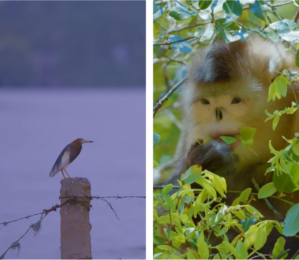 (图:《大江之歌》中池鹭、金丝猴等动物类氛围图)