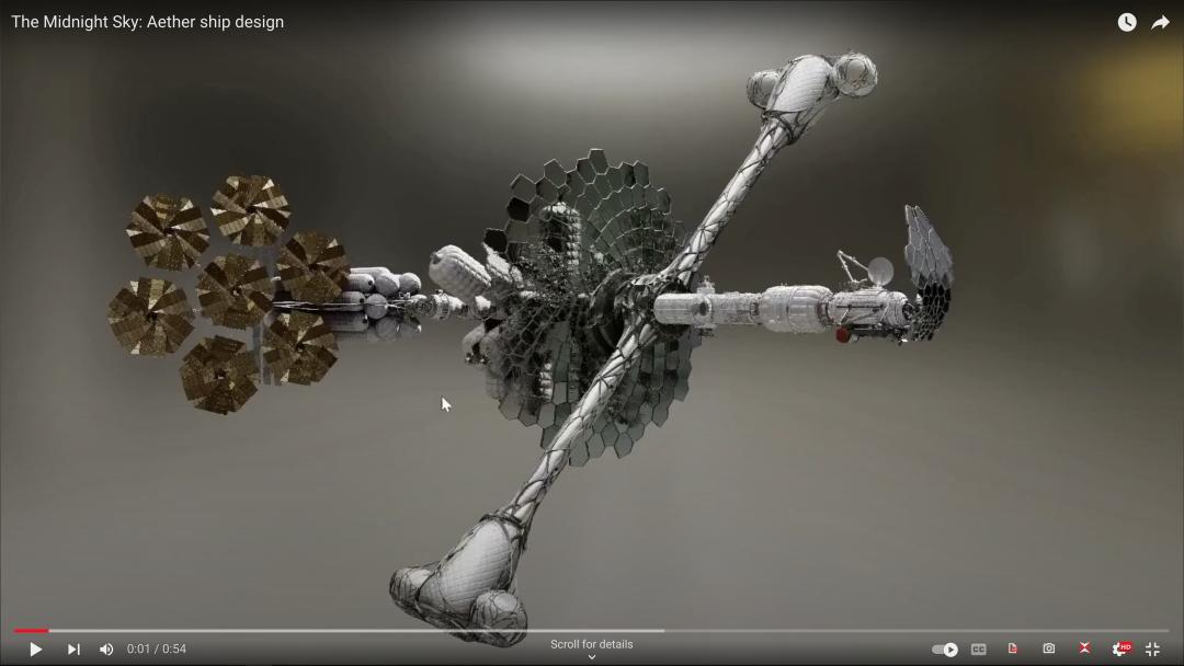 在地球上,我们可以通过大气对流或者其他介质(比如海水)散热,将热量传递给地球;但是太空中,这样的介质不存在,就只能使用辐射散热,这些烧得通红的散热板,就是起到这个作用。由于辐射散热效率很低,所以现实中在 NASA 所构思的一些深空飞船上,散热板的面积要远远大于太阳能电池板。另一部太空飞船设计十分科学的科幻片《午夜天空》(Midnight Sky)中的太空飞船“以太”号,发动机舱前面排成阵列的六边形板就是散热板。