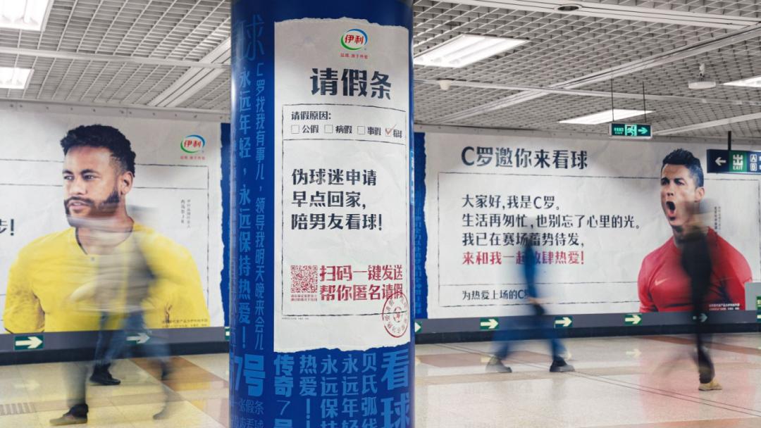 在具体实践中,伊利的营销打法让肌理更为明显。伊利的整体营销节奏,是以「五天一小动作,十天一大动作」持续发声。像是前期蓄力的热搜#00后球迷为看球让内马尔帮忙请假#,背后是伊利安排的明星帮你请假看球赛活动,以内马尔帮忙请假、C罗和贝克汉姆邀你看球为引子,与徘徊在生活和工作之间的打工人有了走心的入口。