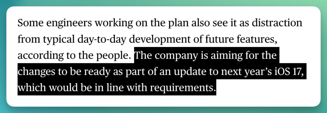 但这次看彭博社的意思啊,苹果似乎已经在做准备了,或许明年 iOS 17 就上线。