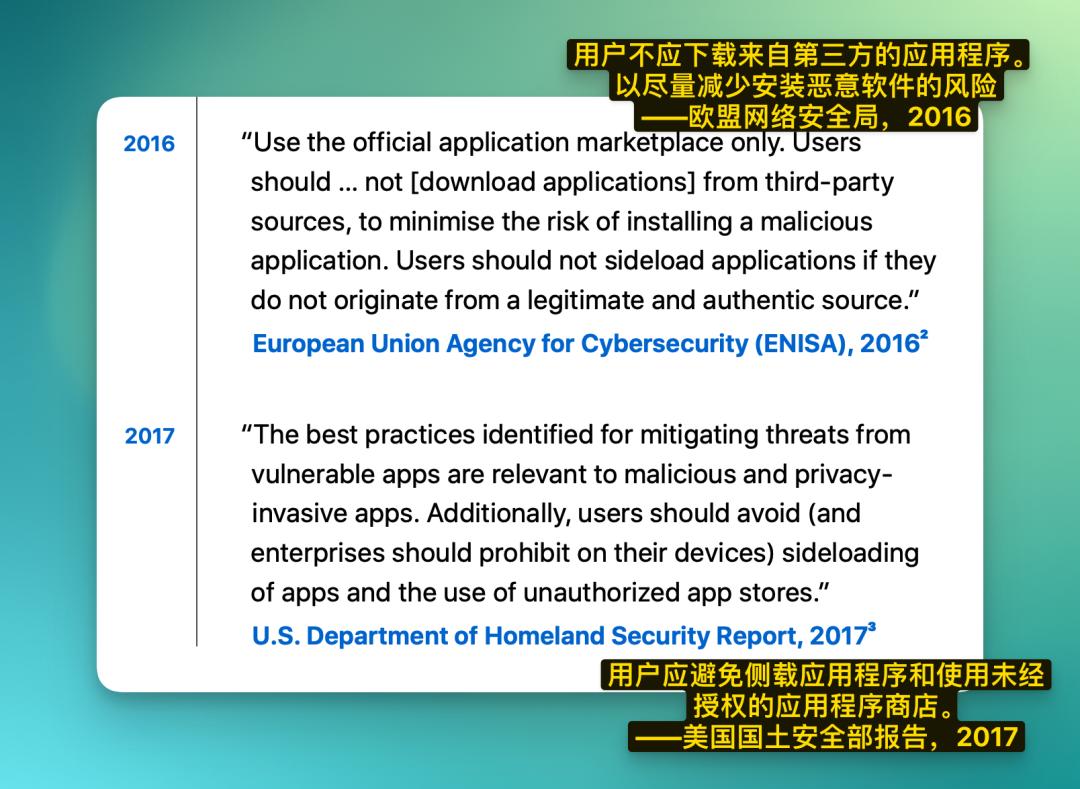 去年苹果发了一篇 16 页报告,当中 19 次提到 sideloading,各方面讲侧载有多不好。