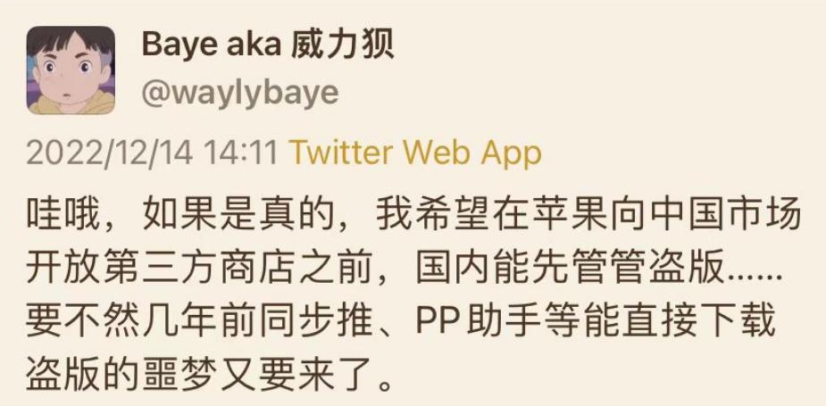 那如果有天 iPhone 能侧载,我就不想交税,我就想搞云游戏,你 App Store 不让过,我就走其他大道呗。