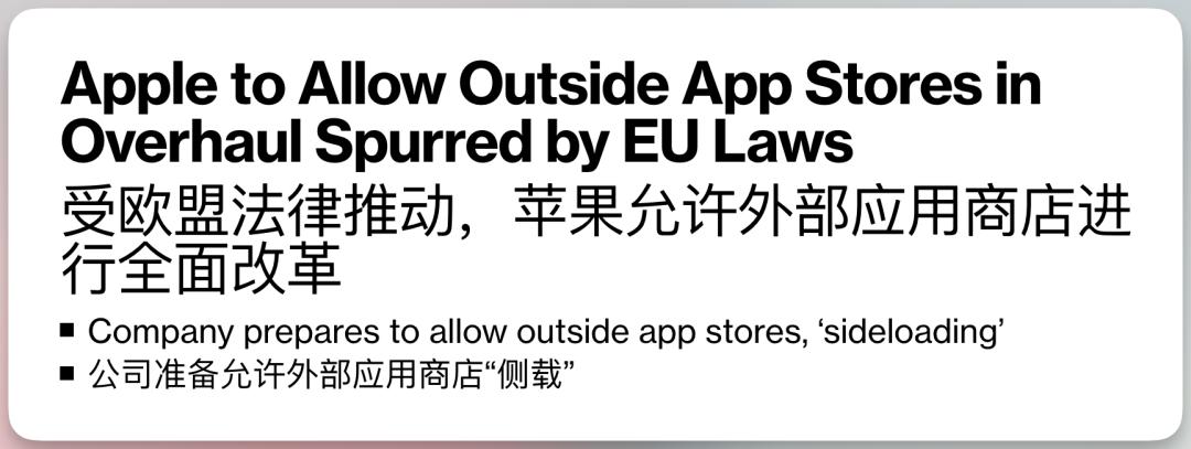 Bloomberg :Apple to Allow Outside App Stores in Overhaul Spurred by EU Laws