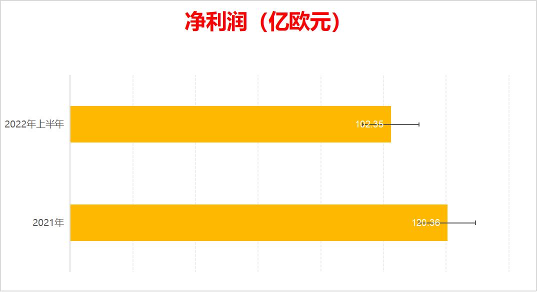 到了2022年上半年,业绩强劲的势头不减:营业收入为367.29亿欧元,同比增长21%;净利润为102.35亿欧元,同比增长34.3%。