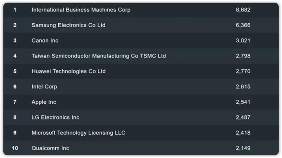 每年美国的专利服务机构IFI Claims都会发布美国专利授权量50强榜单。