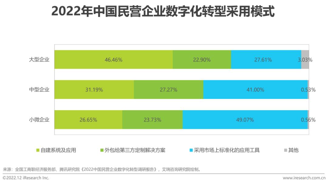 企业在不同需求和产品成熟度环境下,对SaaS与低代码的选择会有所偏好,二者的少量交集可归类为以下两种情形:(1)场景需求标准化但尚未形成成熟产品时,存在替代关系:由于产品研发存在滞后性,在需求成型与产品化成熟之间存在时间区隔,该时间内企业选择使用功能不够完善的SaaS产品,和选择通过低代码平台自行完成系统搭建的意愿是均等的。(2)已形成成熟产品但仍存在复杂的流程管理等定制需求时,存在组合关系:对于部分已形成成熟产品的场景,由于不同企业流程管理逻辑存在差异,可以通过SaaS+低代码的形式,以“整体标准,局部定制”的产品形态满足企业场景需求。