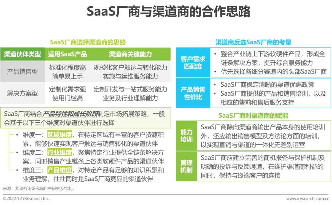 而随着中国SaaS市场规模的快速增长,渠道商为维持自身竞争力,开始从传统软件转向SaaS销售。同时SaaS行业步入买方市场,规模化扩张与销售转化的价值被放大,渠道商快速拓展市场的能力凸显。SaaS厂商与渠道商的关系趋于缓和,双方逐步合作探索SaaS时代下的渠道销售模式。