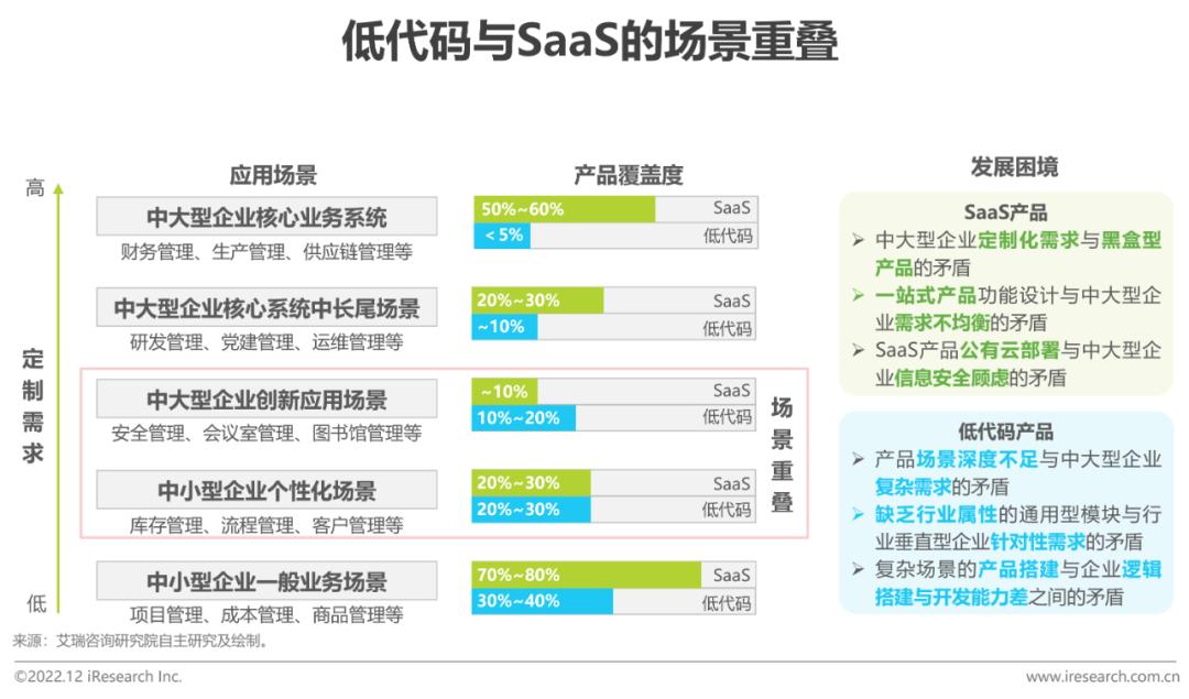 从场景上看,低代码与SaaS的市场有小幅重叠但无正面竞争