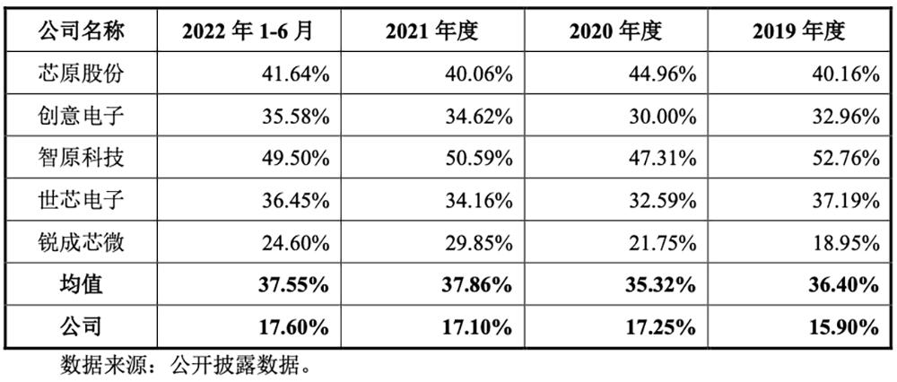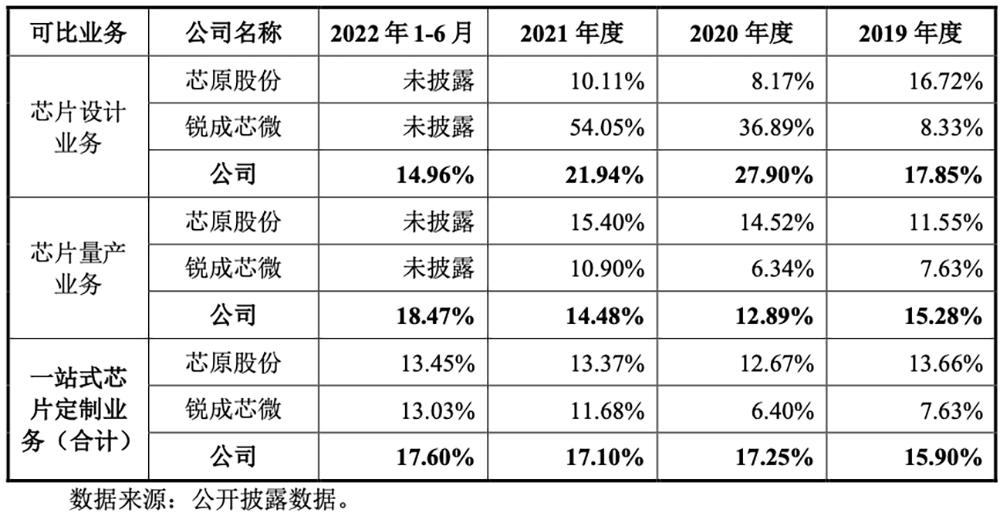 与同行相比,其综合毛利率偏低,主要系芯片定制服务的业务领域、客户类型及经营规模均有较大差异。