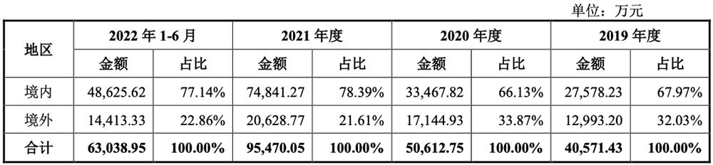 报告期内,灿芯股份主营业务收入中向境外客户销售形成的收入占当期主营业务收入的比例分别为32.03%、33.87%、21.61%和22.86%。