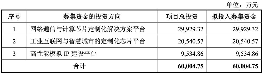 本次IPO,灿芯股份拟募资6亿元,用于投资网络通信与计算芯片定制化解决方案平台、工业互联网与智慧城市的定制化芯片平台、高性能模拟IP建设平台。