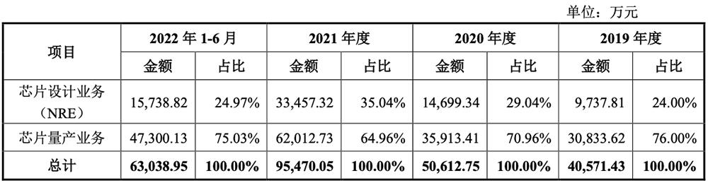 其主营业务分为芯片设计业务(NRE)与芯片量产业务。后者历年营收占比超过6成。