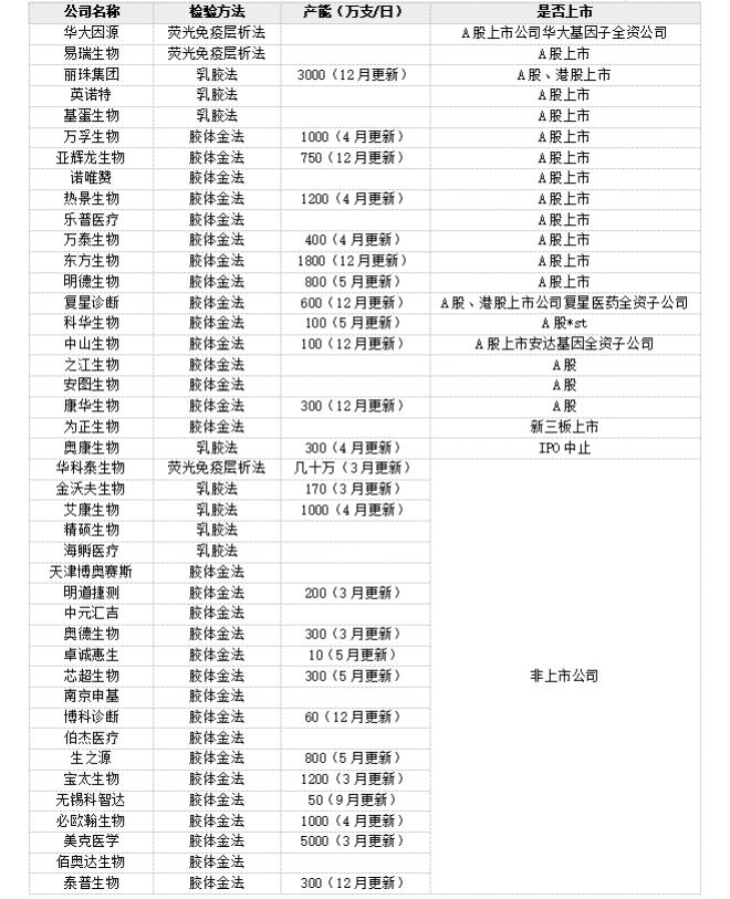 已获药监局批准的42个抗原企业产能情况;36氪根据公开资料制表
