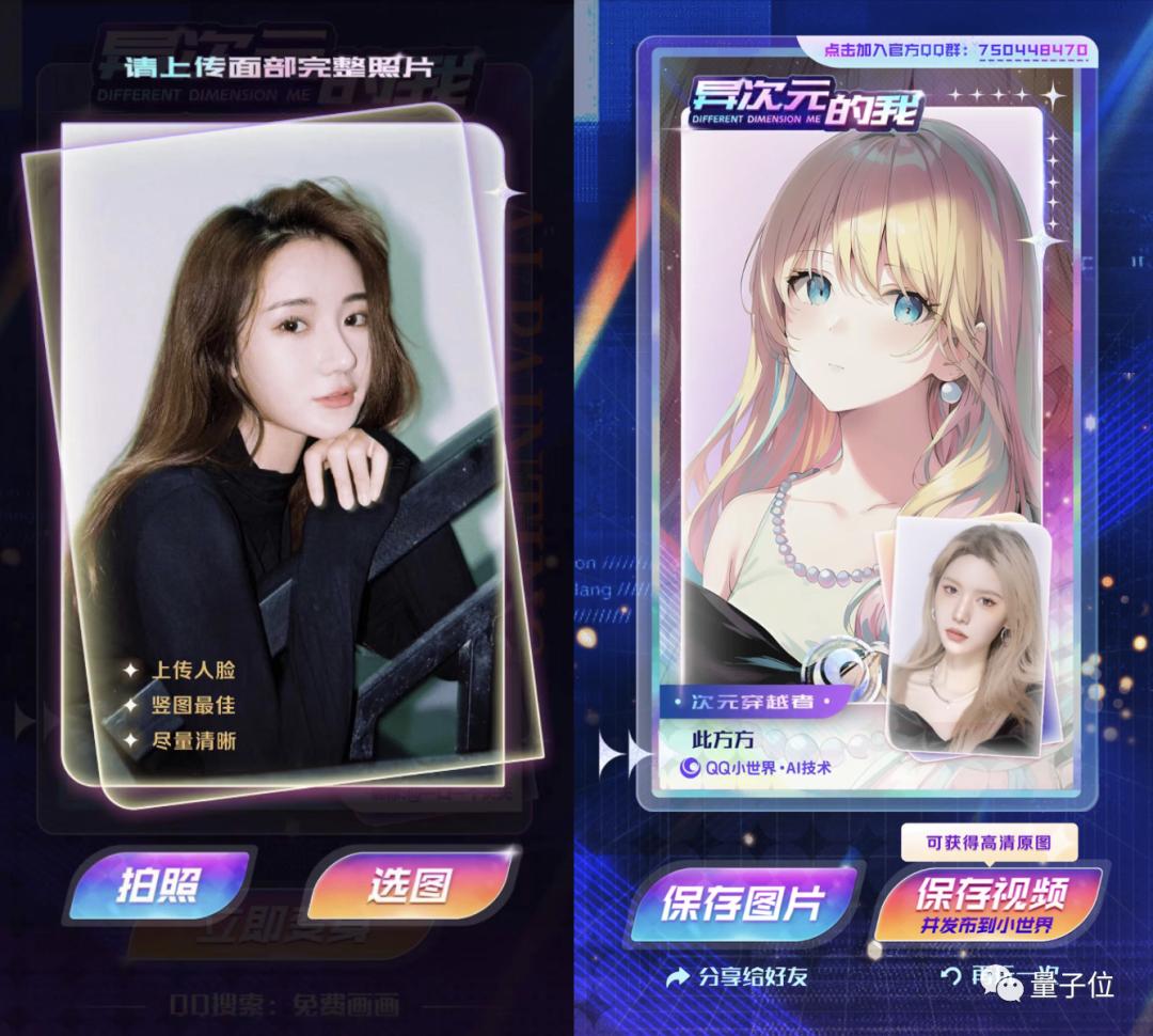 因此,QQ小世界团队针对这些痛点进行了优化改造,用户只需要上传一张图片,即可得到好看稳定的生成效果,降低了使用门槛的同时也保证了生成质量。