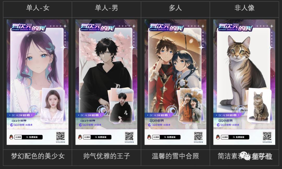 而且为了能让二次元风格图能够hold住各式各样的图片,“异次元的我”还设置了不同的使用场景,让适配度变得更高: