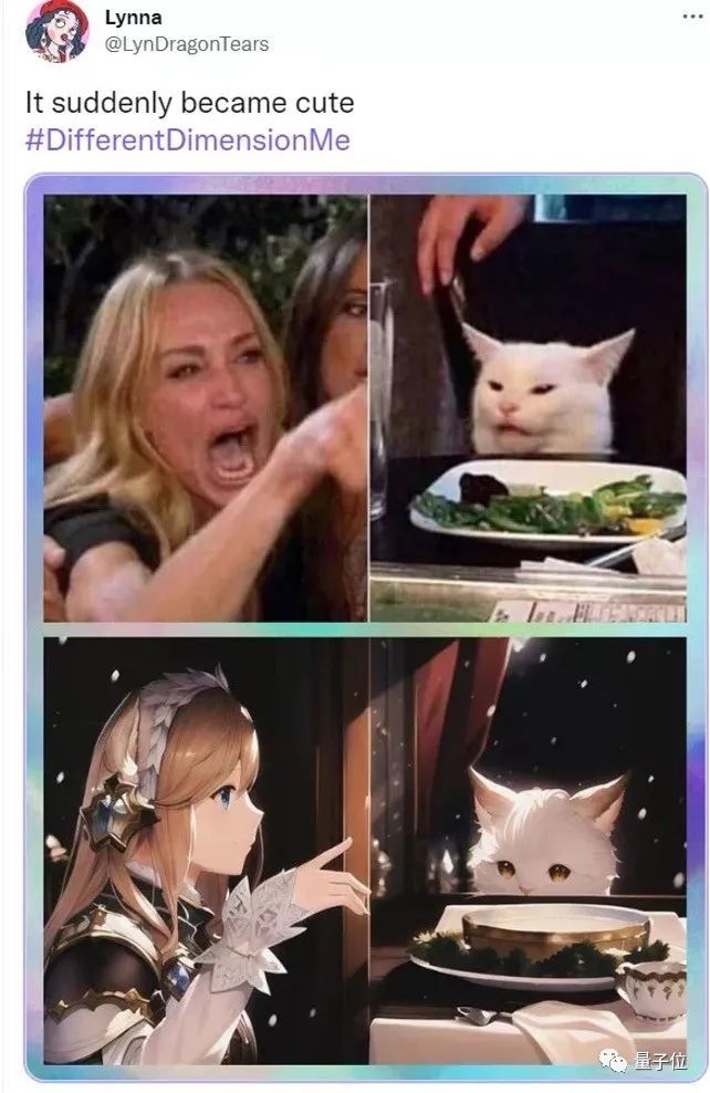 在二次元滤镜下,就连这张经典的“女人吼猫”都透露出一丝温馨,“竟然都有点可爱了呢”。