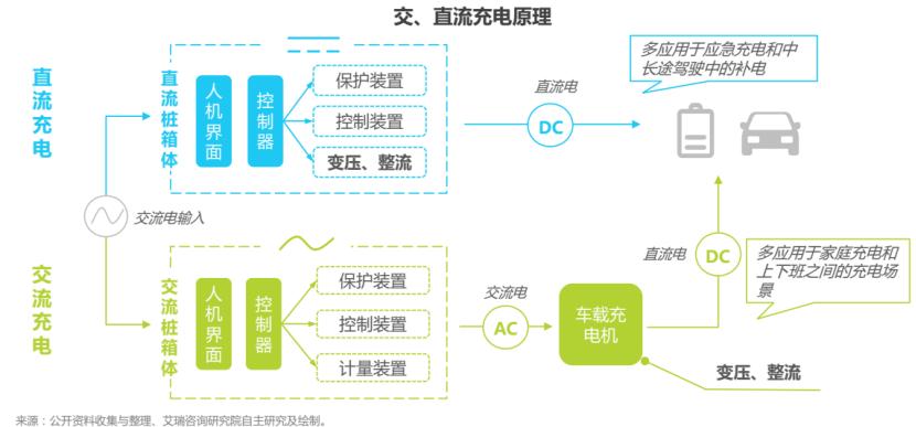 因此,衍生出两种主要的技术路径:一是交流充电桩、二是直流充电桩。