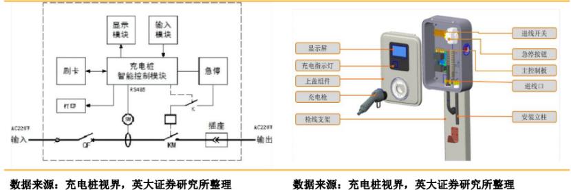 交流充电桩结构较为简单,成本较低。主要由控制主板、电能输入输出回路、充电连接器、人机交互单元等部件组成。主板占成本接近30%,其次为枪线及壳体,成本占比也分别为30%左右。主板起到计量和保护功能,壳体提供支撑和人机交互,充电枪负责充电。