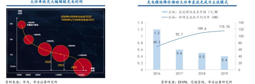 不过,随着国内技术发展,充电功率逐步提升,通过规模效应促进充电模块价格持续下降,大功率直流充成为主流模式更加具备经济性和实用性。