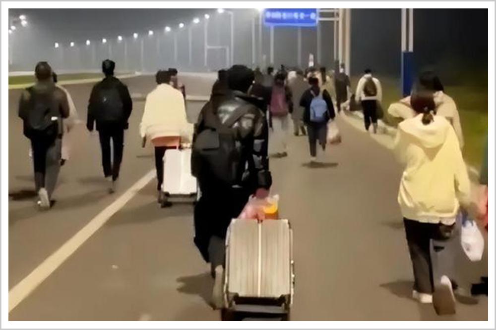 由于无法乘坐交通工具,这些年轻人只能拖着行李,风餐露宿,穿越农田和高速路,徒步几十甚至几百公里回家。