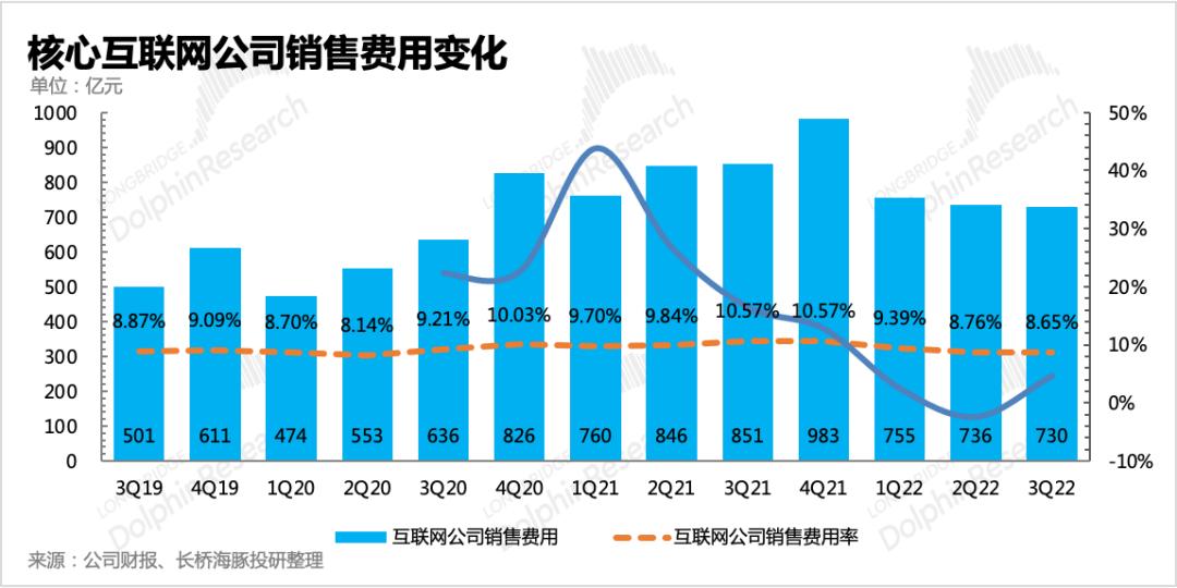 一方面,互联网及娱乐企业降本增效已经持续一年,作为主要减少的营销费用,不少企业销售费用的绝对值已经降到疫情前的水平,费用率上也在不断挑战往年新低。