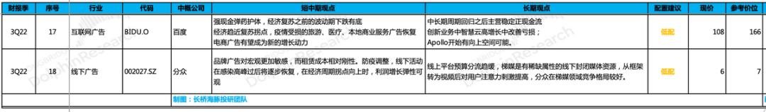 本篇就来先聊一聊广告。年初的时候,我们讲广告股要在不确定性的经济环境下寻找确定的安全边际。而站在现在的复苏拐点,我们则倾向于在长期很难走超宏观经济的广告行业中,更关注业绩修复弹性更高的平台。本篇覆盖的标的主要为纯广告个股,百度和分众。