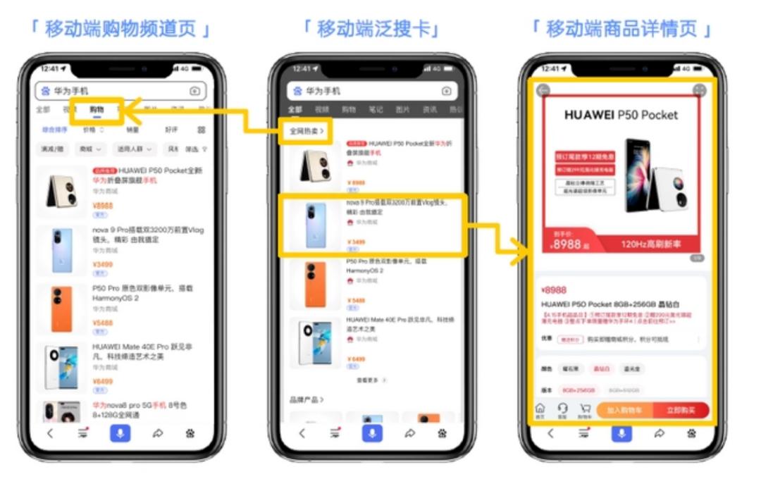 (2)百度重点特色的,包括百度百科、百度知道的知识内容营销,以及围绕百度的优势流量——搜索入口,打造的首页首条链接的广告Banner位、购物频道的第三方电商引流位;
