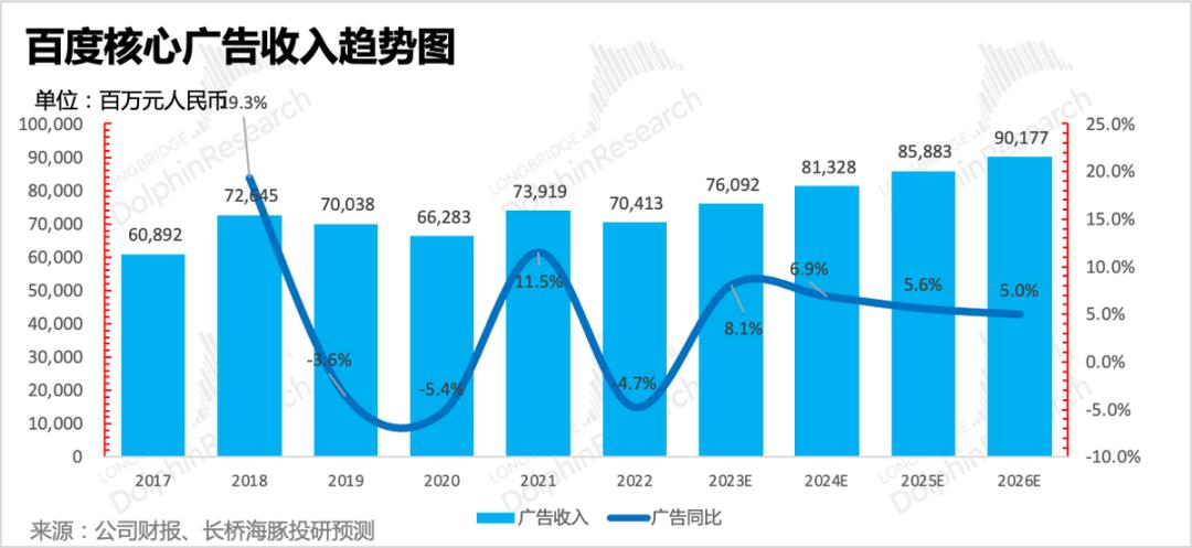 2、百度:夯实的现金弹药以及搜索广告的利润支撑百度的底部价值,但一直投入一直亏损的智能汽车业务,也会不断损耗现金流。