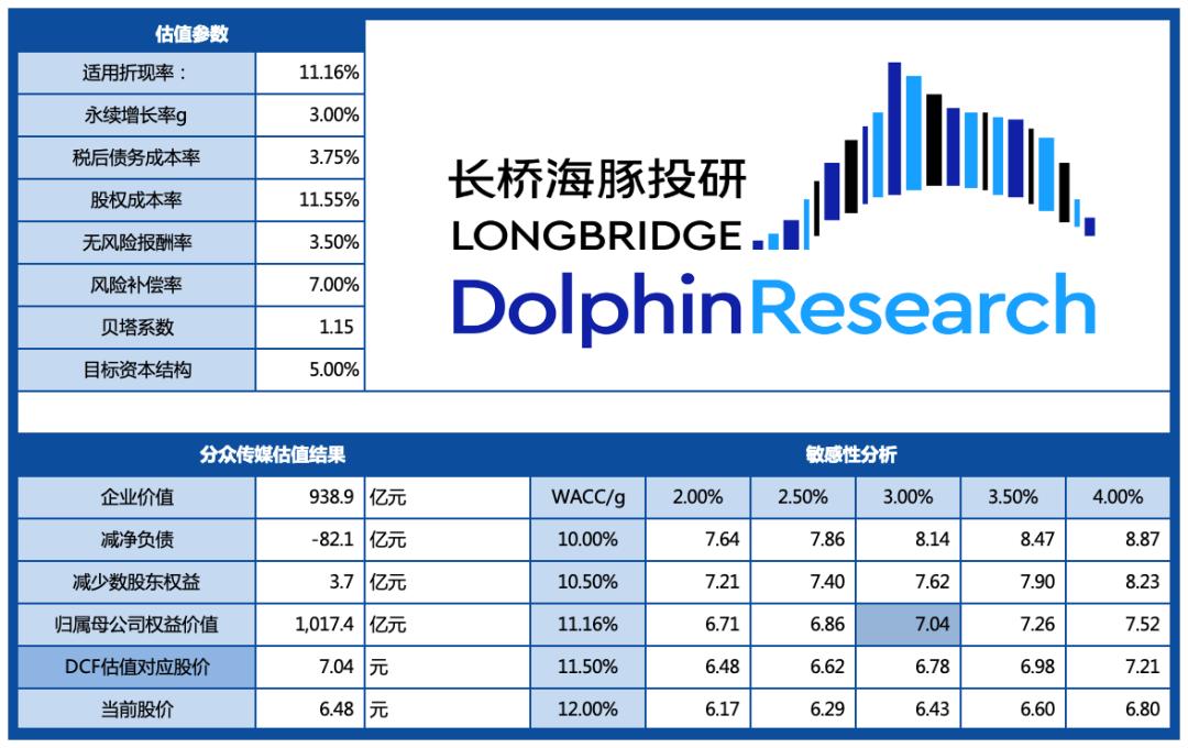 根据以上假设调整后,在WACC=11.16%,g=3%下,海豚君对分众中性预期下DCF估值为935亿元的市值,对应2023年47亿净利润约19x PE。从历史估值区间来看,市场情绪乐观时,forward PE也有希望上冲25x,对应1230亿市值。