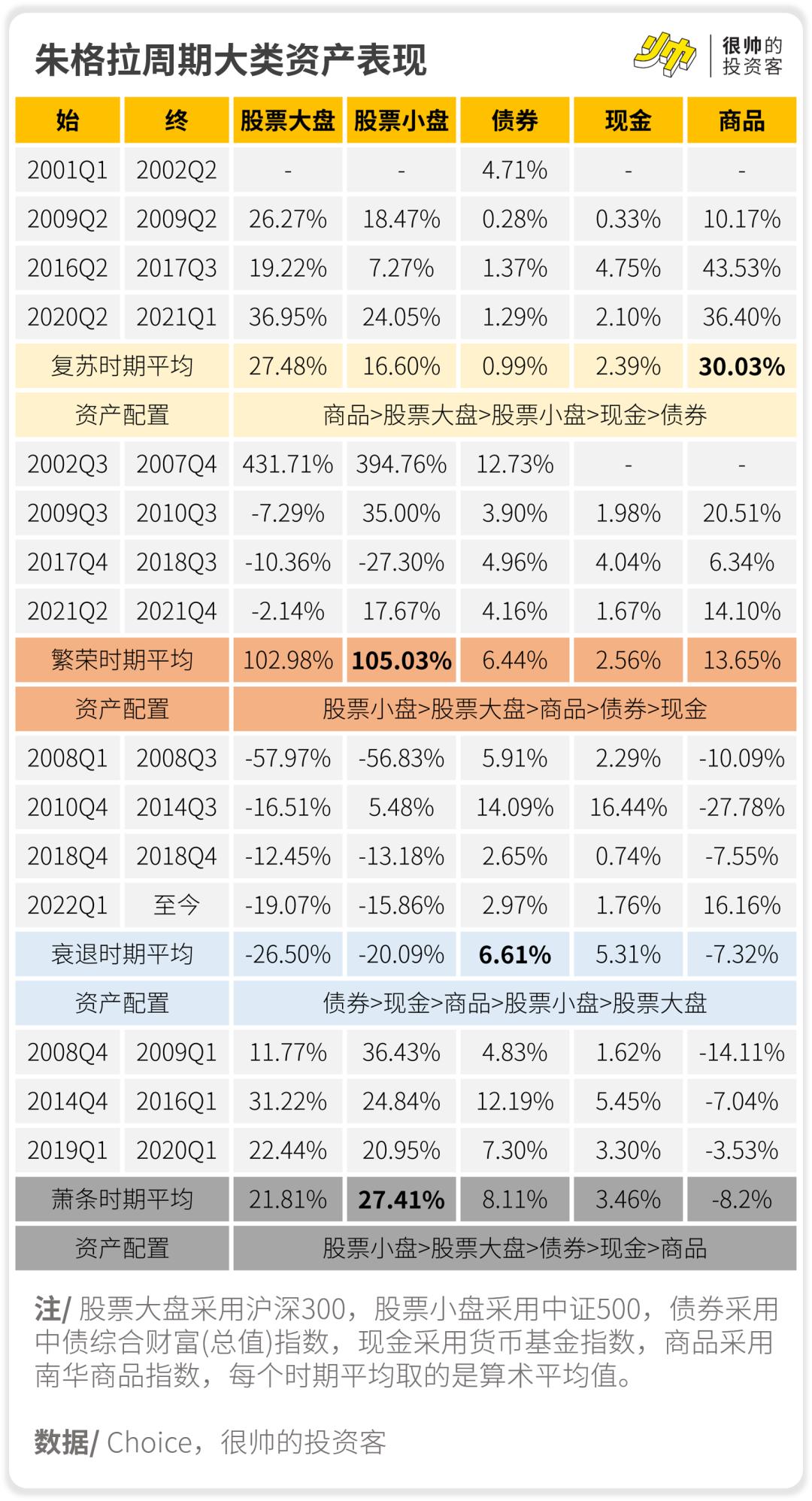 从整个大类资产配置来说, 我们可以看一眼历史表现——