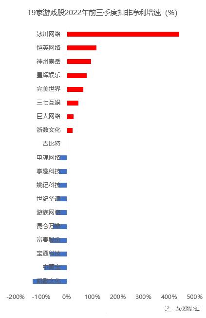 2、净利润:约4成公司扣非归母净利实现正增长,冰川增长接近400%,恺英增长超100%