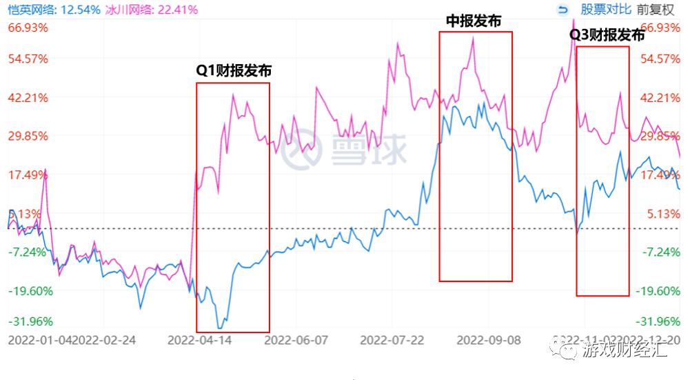 图:冰川网络、恺英网络年初至今股价走势;来源:雪球
