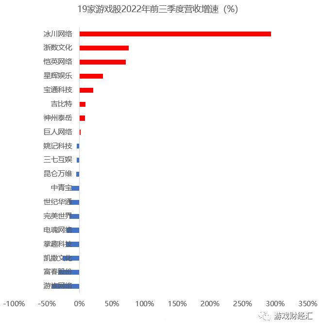 收入增幅最大的是此前默默无闻的冰川网络,前三季度,该公司总营收较去年同期翻了近3倍。其次是浙数文化和恺英网络,两家公司营收同比增幅也均超过70%。