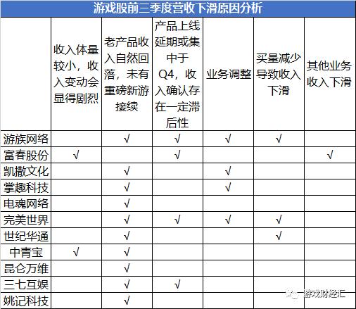 第一,老产品收入自然回落,未有重磅新游接续。比如,三七互娱、世纪华通、完美世界、游族网络、凯撒文化等10家公司。