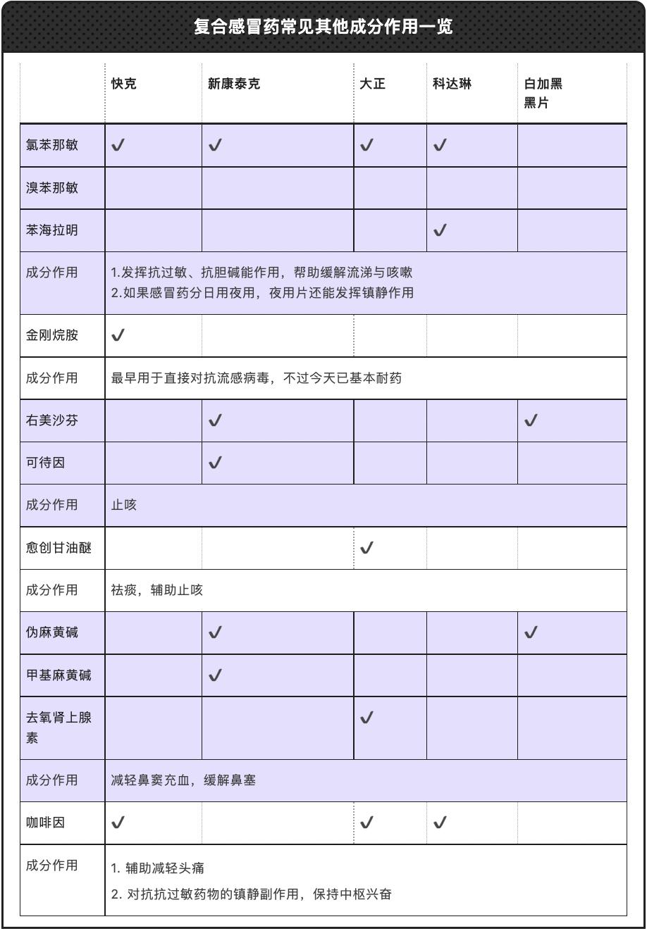 原则上说,复合感冒药里还有其他一些成分,各管各的症状。大家如果手头有不止一种复合感冒药,最好是对症下药,选择情况最接近你的那一款。