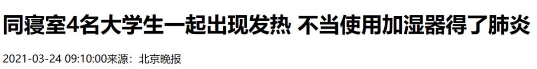 去年11月,4名北京的女大学生,由于只是简单清洗了加湿器后,就倒入自来水使用,集体出现了发热症状,确诊为“加湿器肺炎”。