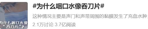 网友们提到自己的症状时,嗓子疼像吞小刀、感觉在咽玻璃渣,都是常见的形容。