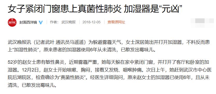 事实上,因为使用加湿器而“中招”的情况,并不是最近才有。