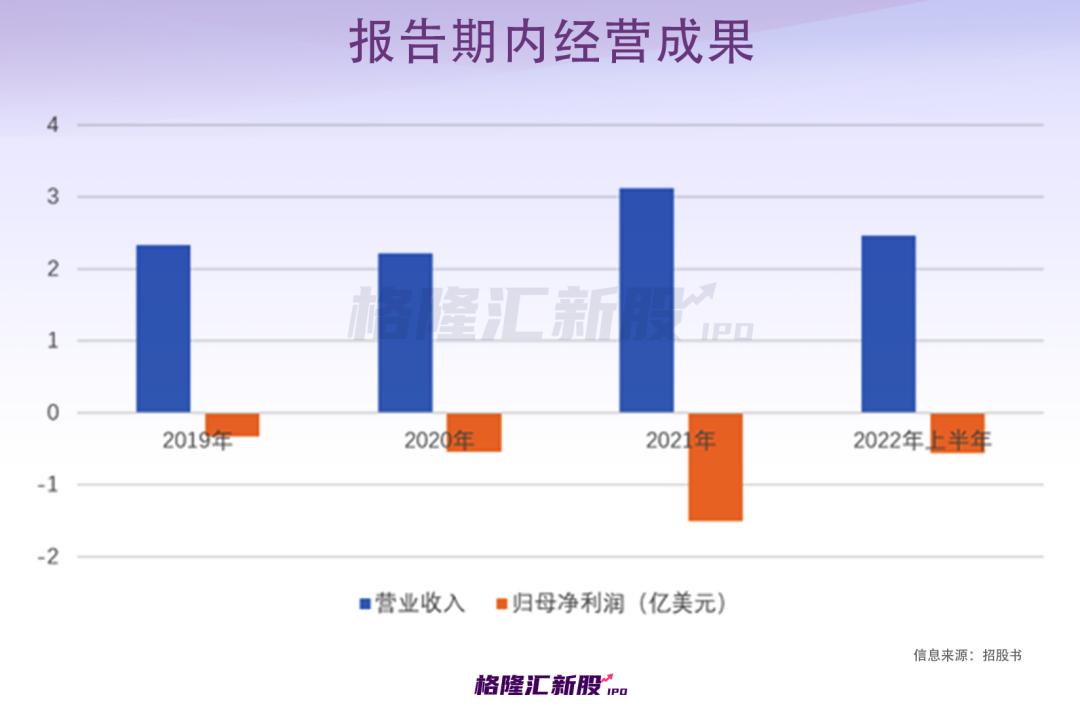 2019年至2022年上半年,特海国际的营收分别约2.33亿美元、2.21亿美元、3.12亿美元、2.46亿美元,对应的净亏损分别约0.33亿美元、0.54亿美元、1.51亿美元、0.56亿美元。
