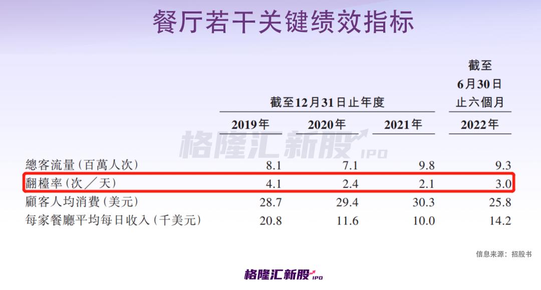 疫情影响下,社交聚会和堂食受到一定限制,餐厅的经营难免受影响,火锅店的翻台率明显下降。2019-2021年,特海国际餐厅的整体翻台率分别为4.1次、2.4次、2.1次,尽管2022年上半年,其整体翻台率提高到了每天3次,也还没回到疫情前的水平。