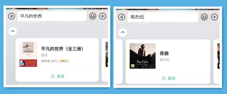 音乐应用方面,输入“周杰伦”可获得多首来自QQ音乐的歌曲推荐,这很可能撬动一部分网易云音乐的忠实用户。有了智能推荐的加持,QQ音乐将成为朋友间进行音乐分享、音乐互动时,更加方便的选择。照此发展下去,未来的QQ音乐有望变成微信御用的App,这又是一道深沉的护城河。