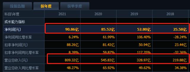 因此,隆基绿能的业绩水涨船高,2021年公司营收达到809亿,同比增长48%,净利润达到90.8亿,同比增长6%,营收和净利润均创历史新高。