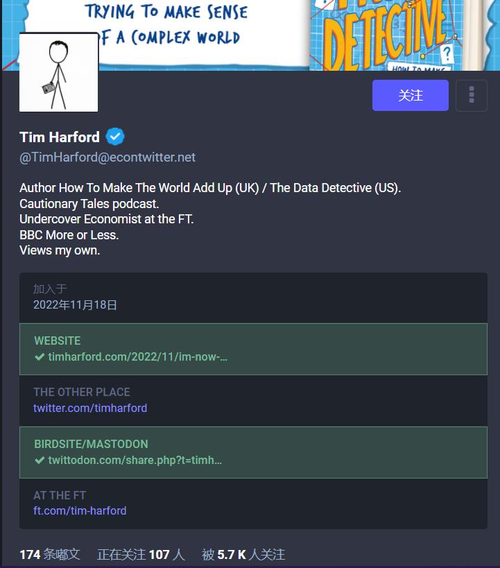图/Tim Harford的Mastodon主页 来源/Mastodon