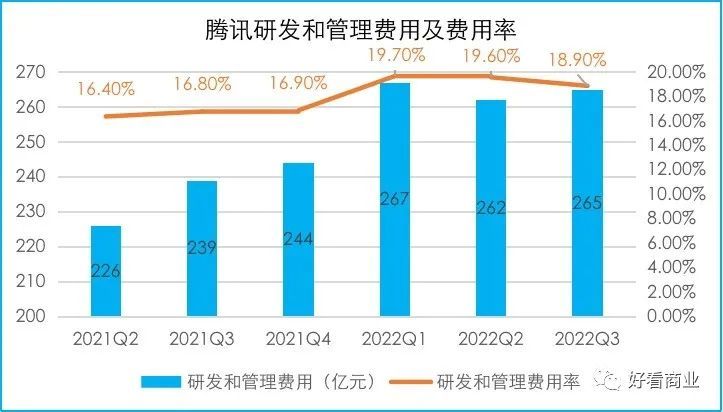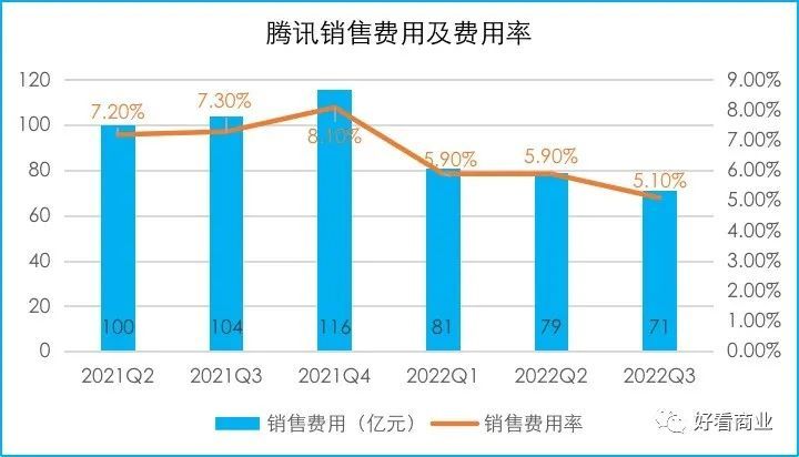 这意味着,2023年,腾讯的各项费用将得到更好的控制,销售费用率、研发和管理费用率都有望下行。
