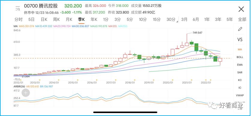 总的来看,整个2022年,腾讯几乎都在渡劫。伴随营收和利润持续下滑,腾讯市值大缩水,股价一度跌破200港元。市场对“股王”腾讯何时重拾升势依然顾虑重重。