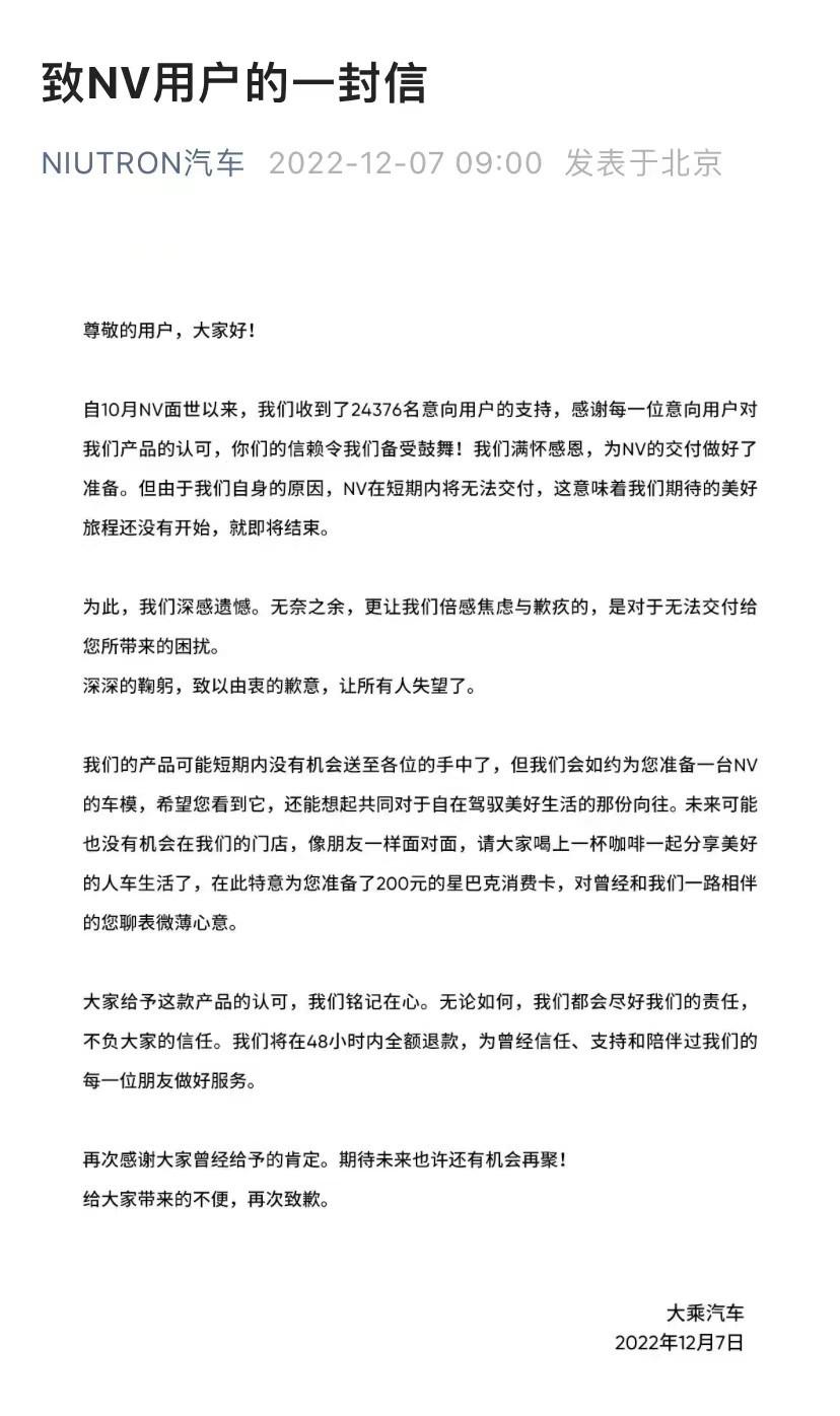 留给后来者还有多少机会难以名状,但清晰的是,他们要经历的坎儿一个都没有落下。小米自打2021年底官宣造车以来,多次被曝资质申请不顺利。去年年底刚官宣造车的李一男,最近更是发文承认因资质问题,第一款新车短期内无法交付。就连财大气粗的恒大汽车,最近也陷入了裁员、解散的传闻中。甚至一月前刚发布新品牌的宾理,这个月就被曝出大规模裁员…….